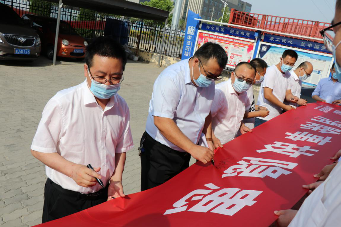 來源:中鐵滄鹽2020年6月是全國第19個安全生產(chǎn)月,我公司結(jié)合"消除事故隱患,筑牢安全防線"的主題,積極組織開展了主題宣誓簽名活動,安全宣誓由公司副董事長王峰偉帶領(lǐng)公司全體員工進(jìn)行,宣誓結(jié)束后,全體宣誓人員進(jìn)行“安全生產(chǎn)月”簽名儀式。此次活動公司全體干部職工參加,大家在公司領(lǐng)導(dǎo)的帶領(lǐng)下,在紅色條幅上鄭重的簽上自己的名字,表明了積極開展安全生產(chǎn)工作的態(tài)度和決心,同時切身感受到當(dāng)前安全生產(chǎn)的高壓態(tài)勢以及各級部門對安全生產(chǎn)的重視。