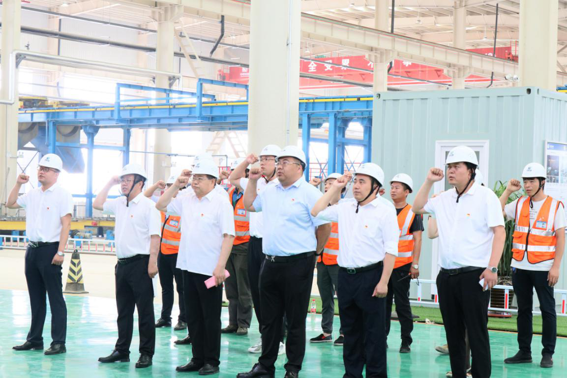 公司全體黨員重溫入黨誓詞由中鐵滄鹽副董事長王峰偉,總經(jīng)理王志巖分別向生產(chǎn)車間班組、拌合站班組授旗,讓黨旗在一線飄揚(yáng),黨員在一線閃光。李金營同志要求全體黨員干部以這次“黨旗進(jìn)車間”為契機(jī),認(rèn)真開展黨史學(xué)習(xí)教育活動,讀原著、學(xué)原文、悟原理,扎實推進(jìn)嚴(yán)細(xì)深實快作風(fēng)教育,落實好集團(tuán)公司黨委黨建引領(lǐng)基層治理、黨建+工程等各項工作部署,積極創(chuàng)建黨員模范示范崗,充分發(fā)揮黨員的模范帶頭作用,把思想和統(tǒng)一到公司標(biāo)準(zhǔn)化管理、企業(yè)文化建設(shè)、訂單承攬、安全質(zhì)量管理等實際工作上來,滿懷激情的將中鐵滄鹽打造成滄州裝配式行業(yè)乃至全國裝配式行業(yè)標(biāo)桿企業(yè)。