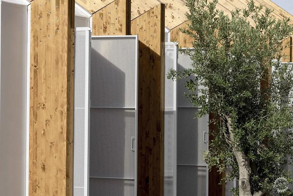 這是一個干燥的工業(yè)化木結(jié)構(gòu),能夠保證質(zhì)量,對于環(huán)境的影響低,但是有著一定的效率、經(jīng)濟效益,以及結(jié)構(gòu)設(shè)計精準度。與此同時,這種體系便于運輸、調(diào)試、裝卸,為了滿足這些需求,結(jié)構(gòu)、天花板、立面、技術(shù)樓層的綜合網(wǎng)絡和空調(diào)之間的協(xié)調(diào)必不可少。在建筑內(nèi)部,項目的最后一層覆蓋了與展館中建筑部分相同的完成面。