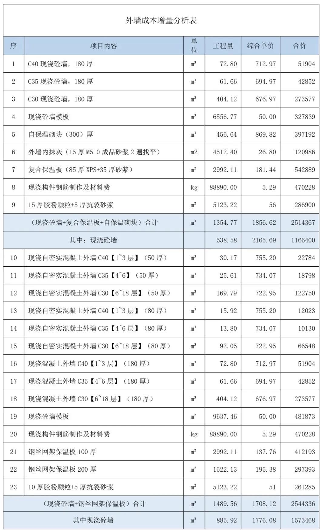 (4)增量成本控制措施:合理選擇外墻保溫體系。